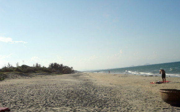 Passado a empolgação fashionista, montamos novamente na nossas bikes e fomos para a praia! Porque ninguém dá muita atenção para essa praia gente? Ela é ótima! Vazia, com alguns lugares com espreguiçadeiras, cerveja e comida boa! Pagamos uma porção de camarãozinho à milanesa por não mais que 4 dólares. O mar é calmo e a água quentinha, quente até demais as vezes. Gostamos bastante e passamos 2 dias por lá. O bom é ir mais para a esquerda, onde os barzinhos são menores, mais acolhedores.