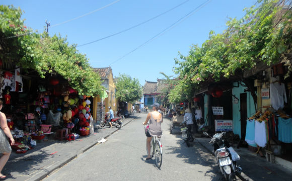 É muito gostoso pegar uma bike e sair por aí pela cidade, sem rumo, sem saber onde vai parar. Em Hoi An é fácil porque é uma cidadezinha pequena, mas pra chegar na praia é um pouco mais longe, uns 30 minutos do centrinho. O aluguel por um dia custa só 30 mil dongues (U$ 1,35).