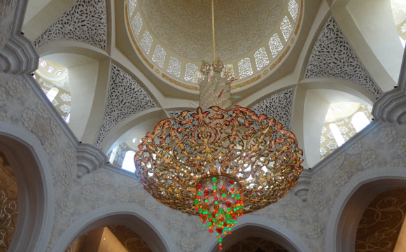 Logo na entrada da Sheikh Zayed Grand Mosque, em Abu Dhabi, é preciso tirar os sapatos. Cuidado para não pisar nas flores desenhadas no chão por artesãos italianos. Não porque elas podem quebrar, mas porque o chão, todinho de mármore, sempre está quente sob um Sol de 40° e você pode queimar seus pés nas partes coloridas.