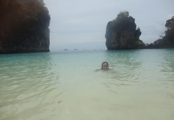 À tarde paramos em outra praia, e a 3° ficou pra história, porque o tempo ameaçava chover. Passamos rapidamente pela lagoa e chegamos a Ao Nang por volta das 17h. Agora sim estávamos satisfeitos: Estamos na Tailândia!