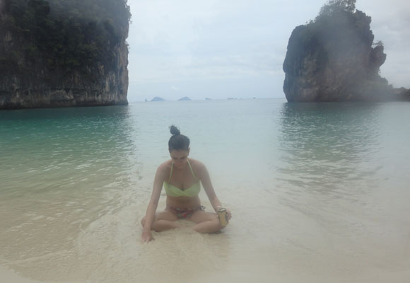 Estávamos aguados por aquelas paisagens bonitas! A praia de Ao Nang, onde estávamos hospedados, já nos deu um gostinho, mas queríamos mais! E lá estava ela: Hong Island! Achamos uma sombrinha e um vendedor de cerveja. E isso nos bastou. O almoço é servido lá mesmo, um pouco mais mata adentro. É sem frescura alguma e com muita pimenta! Mas dá pra segurar a fome com algumas frutinhas que servem de sobremesa.